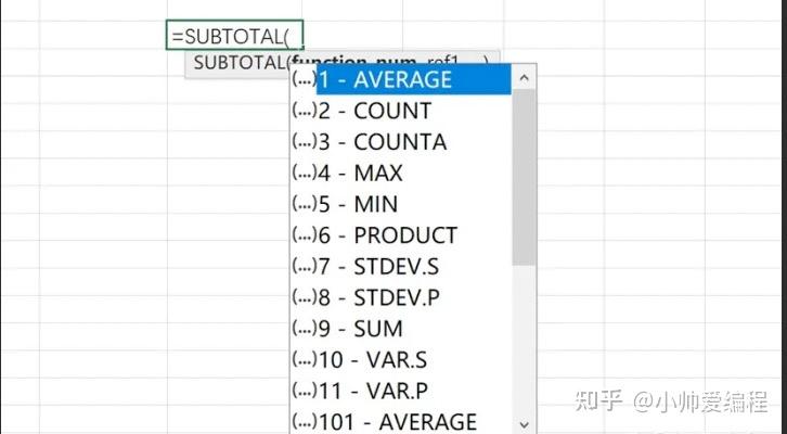 语法:=SUBTOTAL(选择函数类型,ref1,[ref2],...)