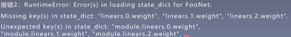 这个报错信息是出现在我们用多GPU并行运算的机制训练好了某个模型并保存,然后想再建立一个普通的模型使用保存好的这些参数,就会报这个错误。这是因为我们在多GPU并行运算的时候,我们的模型net先进行一个并行的一个包装,这个包装使得每一层的参数名称前面会加了一个module.这时候,如果我们想把这些参数移到我们普通的net里面去,发现找不到这种module.开头的这些参数,即匹配不上,因为我们普通的net里面的参数是没有前面的module的。这时候我们就需要重新创建一个字典,把名字改了之后再导入。