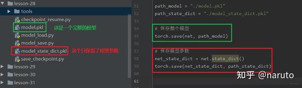 第一种方法比较懒,保存整个得模型架构,比较费时占内存,第二种方法是只保留模型上得可学习参数,等建立一个新得网络结构,然后放上这些参数即可,所以推荐使用第二种。下面通过代码看看怎么使用。