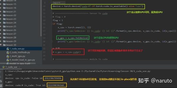 上面两个方法的区别:张量 不执行inplace ,所以上面看到需要等号重新赋值,而模型 执行inplace ,所以不用等号重新弄赋值。下面从代码中学习上面的两个方法:
