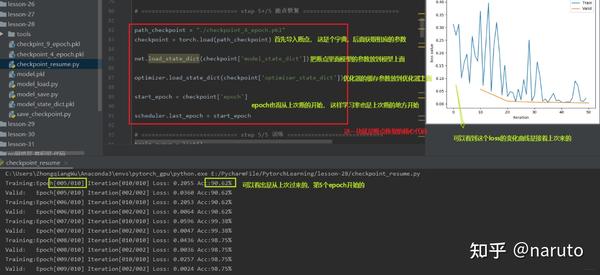 我们上面发生了一个意外中断,但是我们设置了断点并且进行保存,那么我们下面就进行恢复,从断点处进行训练,也就是上面得第6个epoch开始,我们看看怎么恢复断点训练: