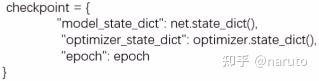 那么就有一个问题了,这个checkpoint里面需要保留哪些参数呢?我们可以再次回忆模型训练得五个步骤:数据->模型->损失函数->优化器->迭代训练。再这五个步骤中,我们知道数据,损失函数这些是没法变得,而再迭代训练过程中,我们模型里面得可学习参数,优化器里面得一些缓存时会变得,所以我们需要保留这些东西。所以我们得checkpoint里面需要保存模型得数据,优化器得数据,还有迭代到了第几次。