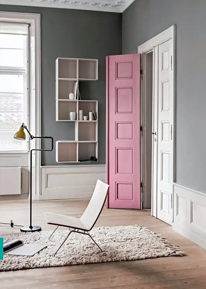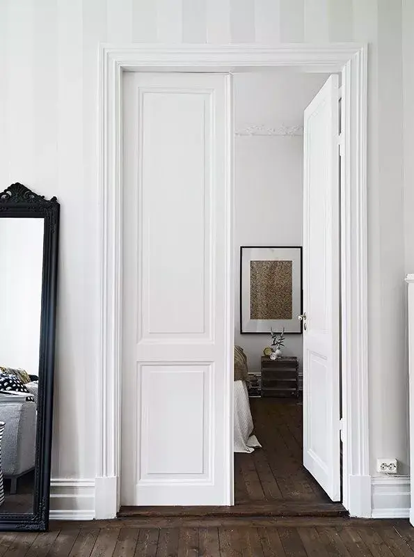 还有一个更省的方法就是把原本平淡无奇的门做出线条感,假装是护墙板!衣柜门、房间门都可以这么做。
