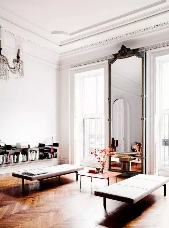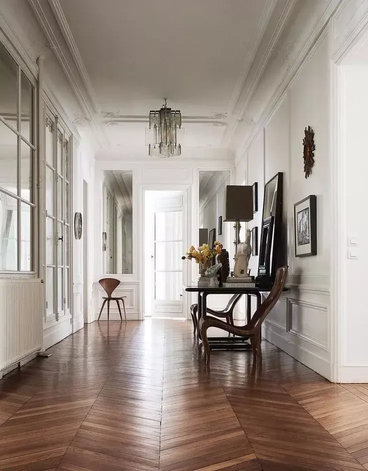 “水晶灯+大镜子”是自凡尔赛宫镜廊起法式传统的一个标志,实在是太法式血统了,所以到现在巴黎各种普通住家公寓里还在大规模使用这两样单品。