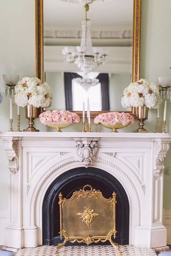壁炉同样也是中国家庭的鸡肋,不如换成一张边桌,上面放一个复古款大镜子,在镜子前放上鲜花和植物,更适合国内小公寓。
