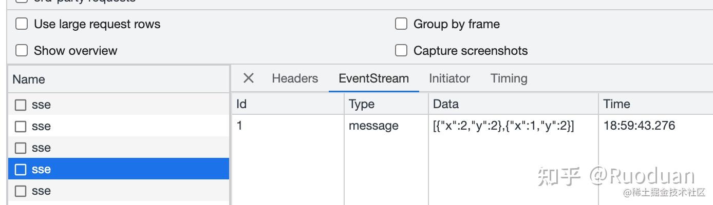 这个示例完成后我们可以在 浏览器 network 看到 每秒打印 "hello: 'world'", 你可能注意到了这里的