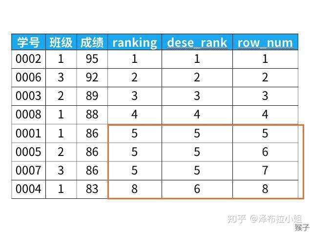 rank函数:如有并列名次的行,会占用下一名次的位置。