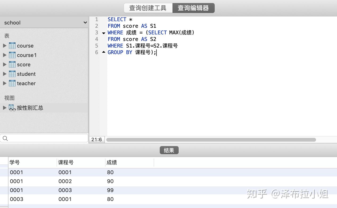 avg(成绩) over (partition by 科目 ) AS avg_score FROM 成绩表) AS b