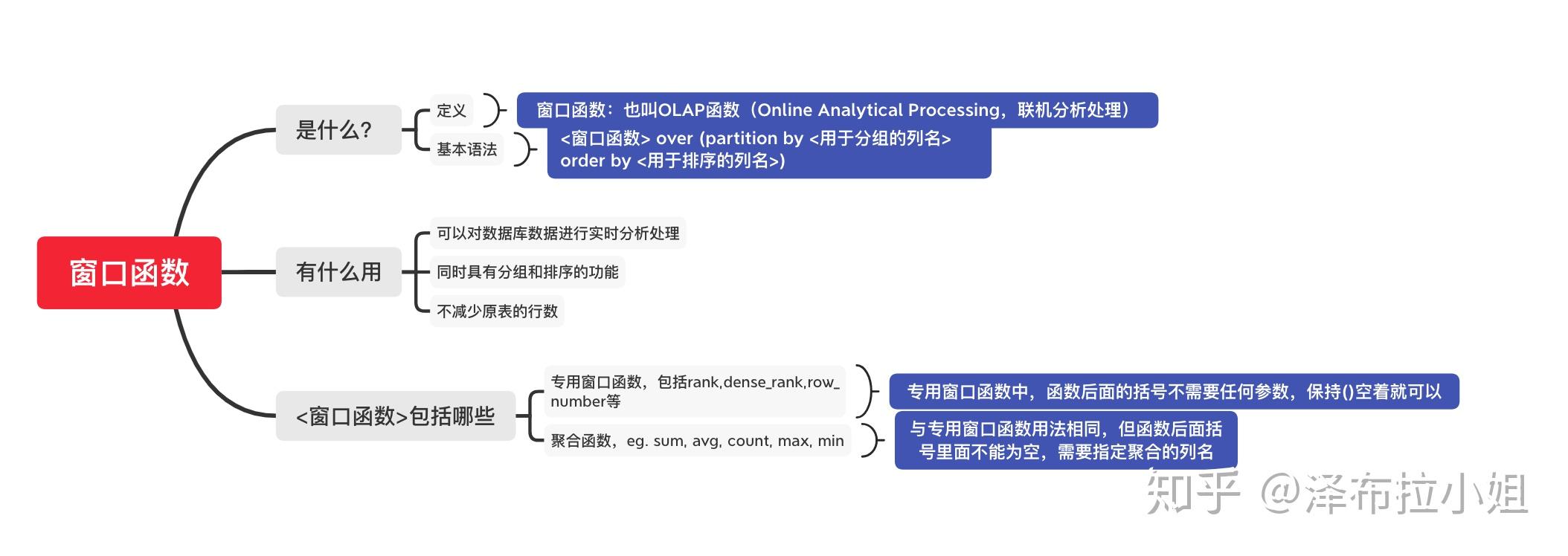 1.窗口函数是对where或者group by子句处理后的结果进行操作,所以窗口函数原则上只能写在select子句中。