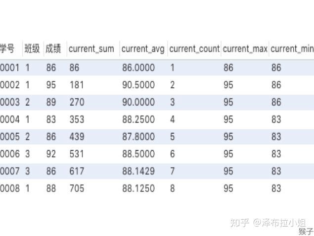 聚合函数作为窗口函数,可以在每一行的数据里直观看到,截止到本行数据,统计数据是多少。同时可以看出每一行数据对整体统计数据的影响。