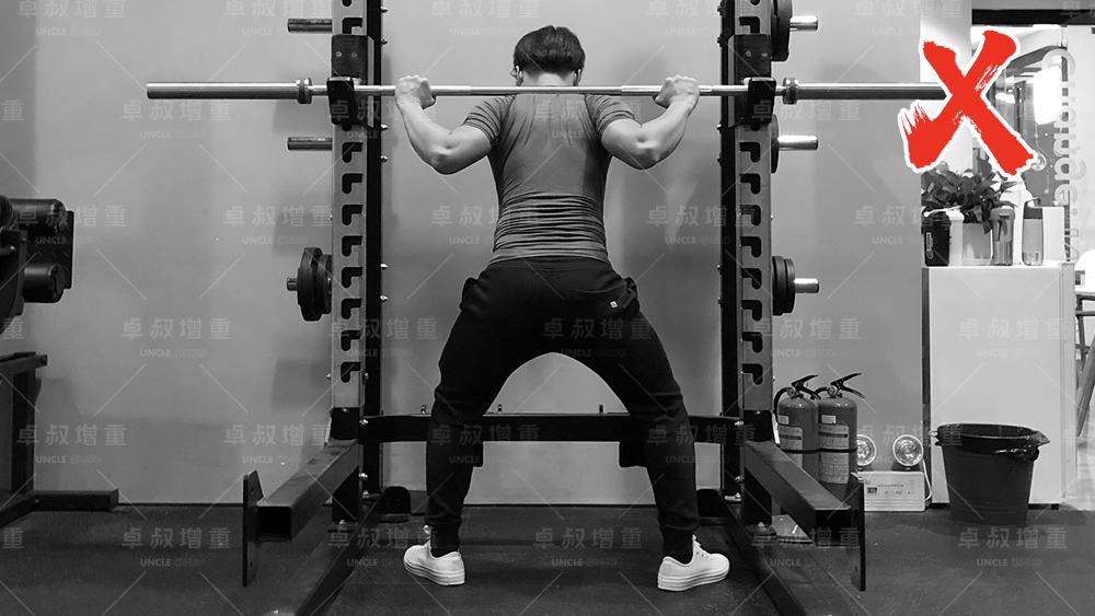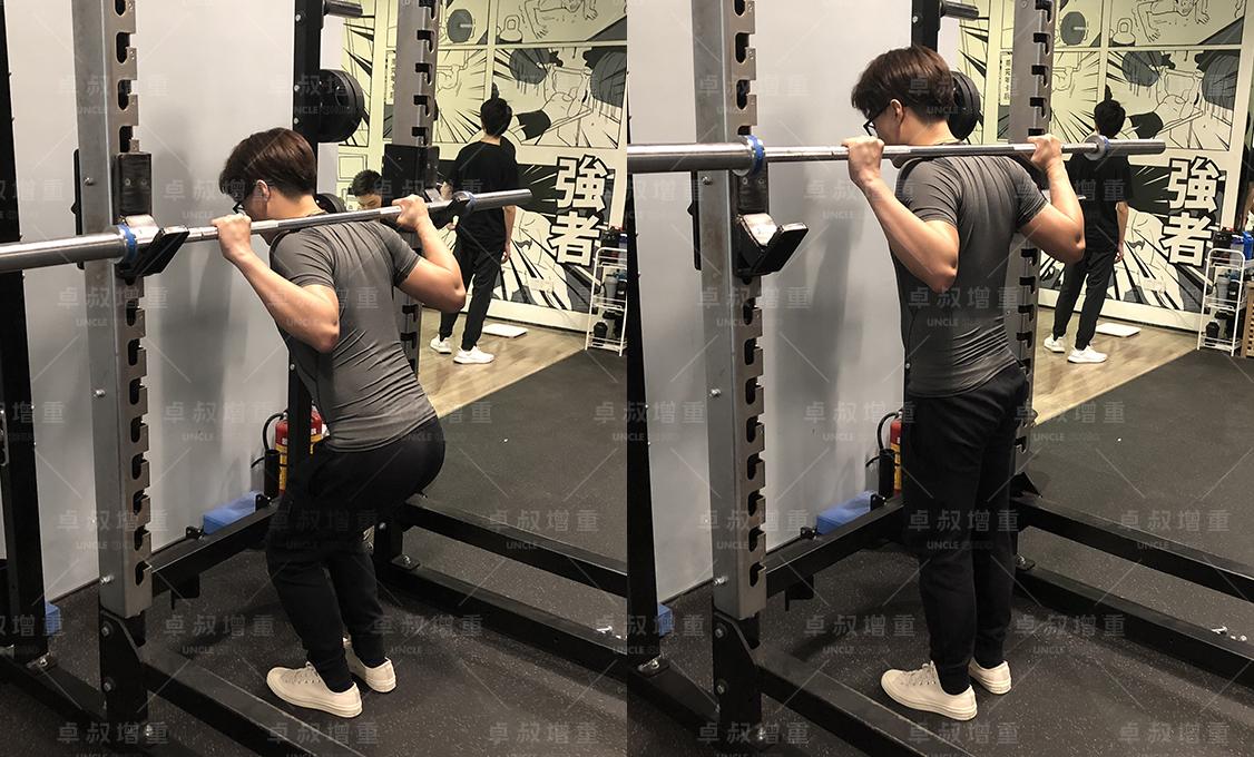 但如果你还是在新手阶段,动作未熟练,容易蹲着蹲着动作变形;又或者你在冲击大重量,每一次蹲下都是挑战,那我建议你还是在「最高点」重新调整一下,对你比较好。