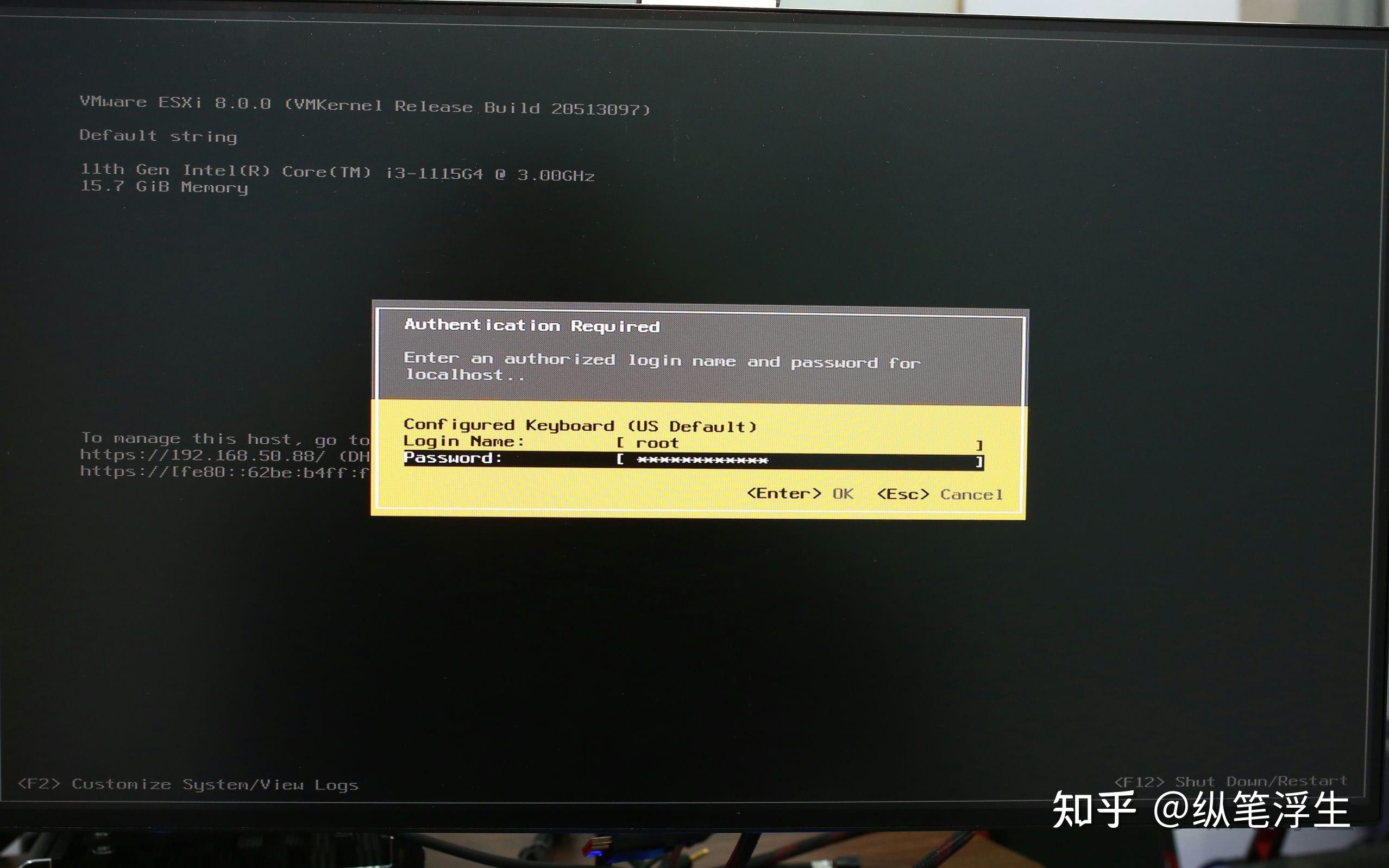 按F2,弹出登录页面,输入刚才设定的密码。回车,进入ESXI管理后台。