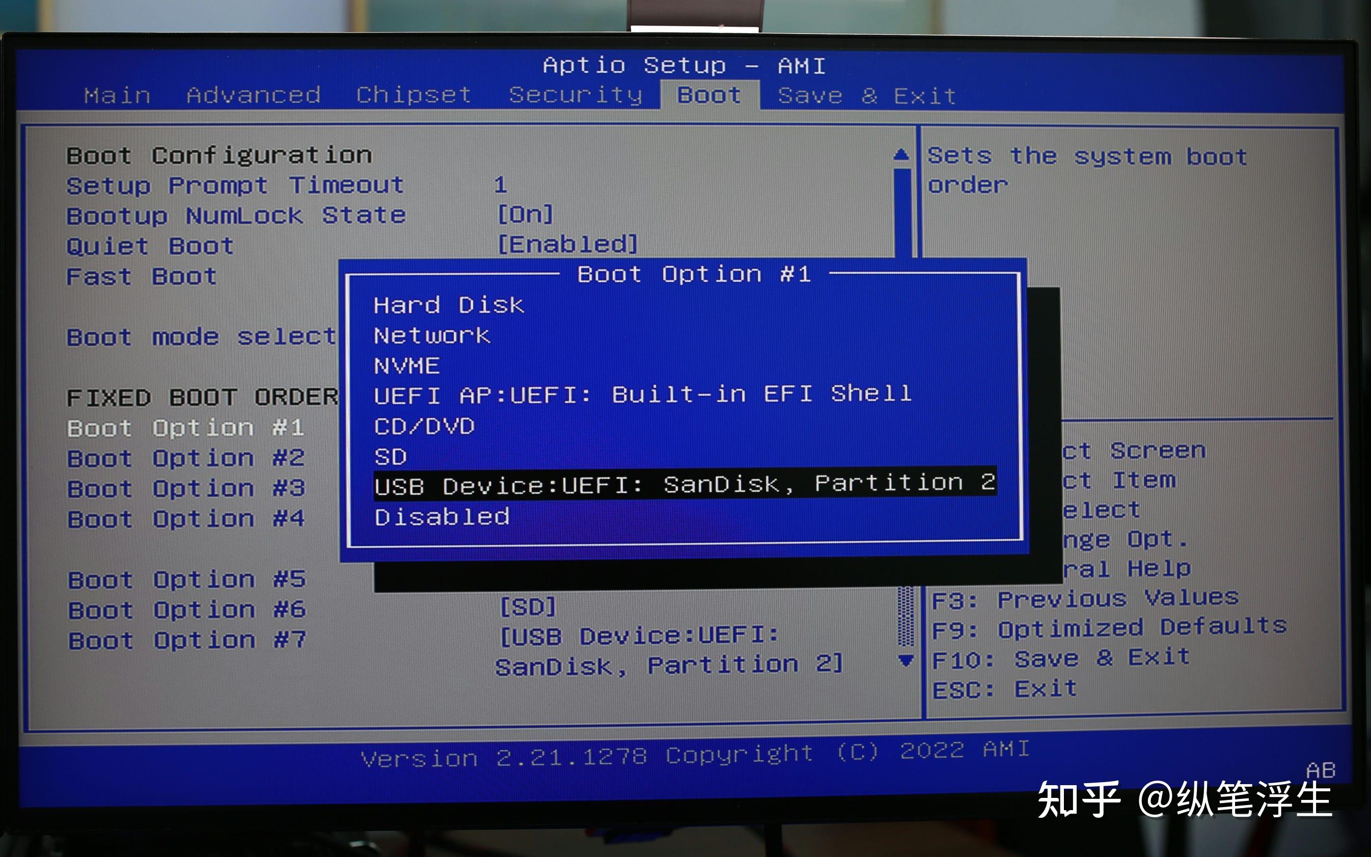 选择安装位置,可以看到有两个盘,一个NVMe的固态硬盘和U盘,用键盘上下键调整,选择第一个安装在固态硬盘。一定要看好,不要安装错位置。选择好了回车继续: