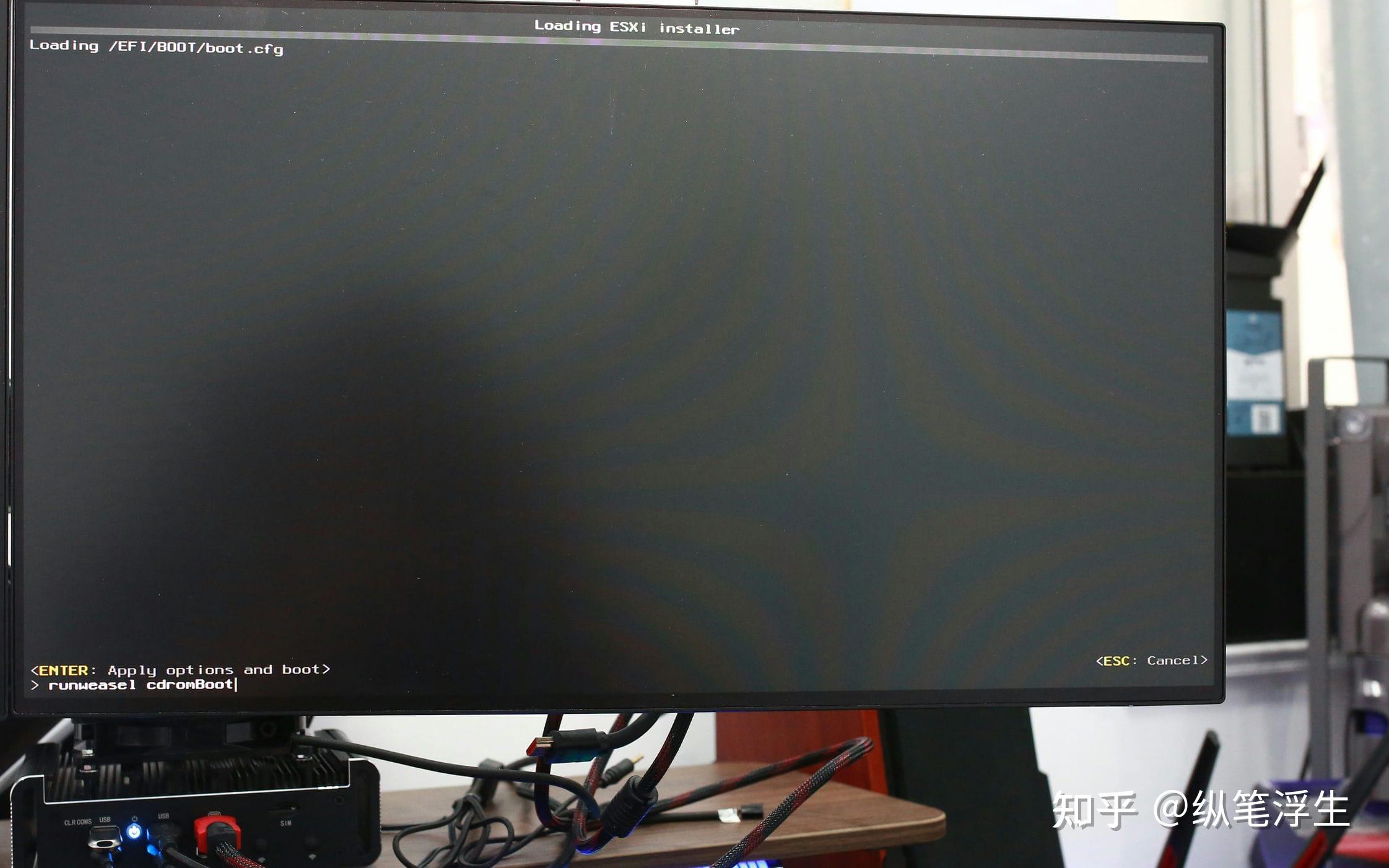在读秒阶段,快速按下Shift+O,调出命令行,来修改ESXI的默认空间大小: