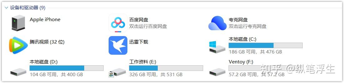 打开磁盘管理,可以看到 U 盘被细分为 2 个大分区,Ventoy 分区为活动分区,exFAT 文件系统,用于存放 ISO 文件,exFAT 文件系统也能更好的跨平台使用。