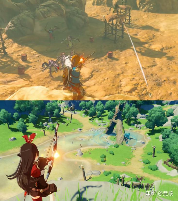 提到“开放世界”,大多数人第一个想到的便是任天堂的高分神作《塞尔达传说:旷野之息》,本次原神pv披露后,不少玩家便指出原神与旷野之息的多处相似有抄袭之嫌。