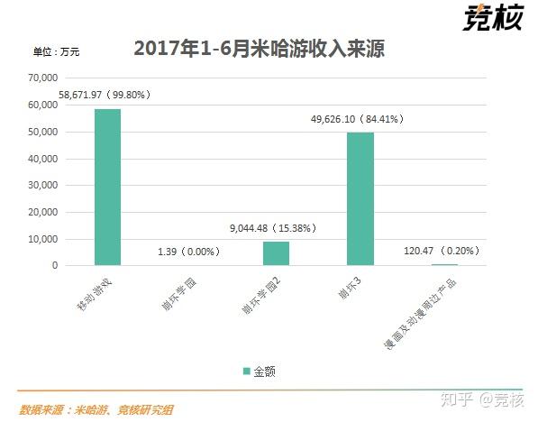 据12月更新的招股书显示,米哈游收入主要来源于移动游戏《崩坏学园2》与《崩坏3》。2017年上半年,总收入58792.43万元,其中《崩坏3》收入为49626.10万元,占比高达84.41%。