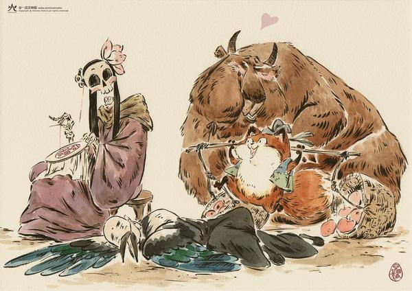 作为狐狸,看到你笔下的狐狸精是这样一个可爱憨厚的样子,看山也好开心。为什么想到画妖怪呢?