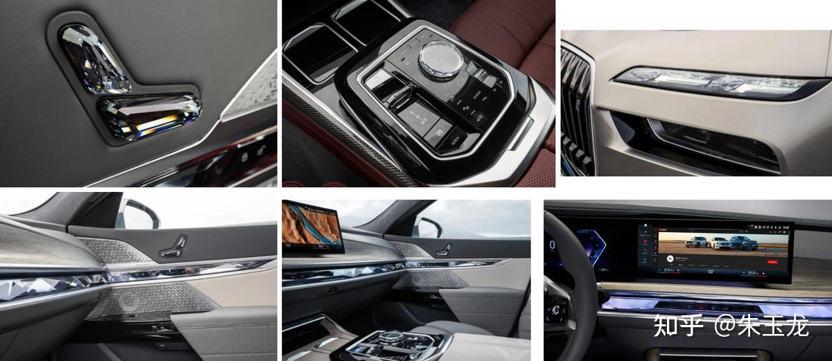I7上面,BMW现在在玩水晶的概念,分体大灯,上部双L型日间行车灯,下部集成施华洛世奇联合打造的大灯模块,车内各种物理按键和各种氛围灯材质,均采用水晶材质的配饰,就连门板上的座椅调节按键都是水晶套件。