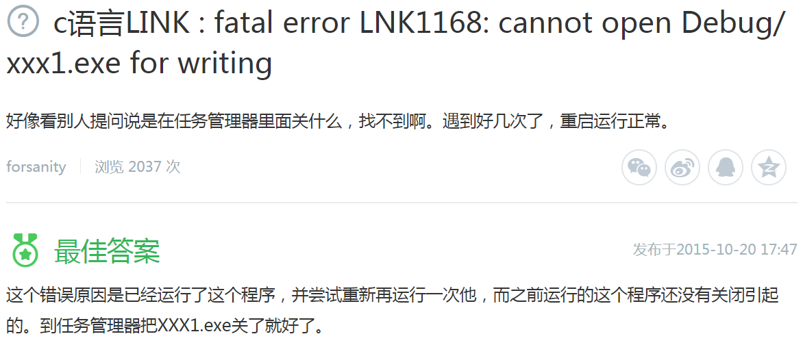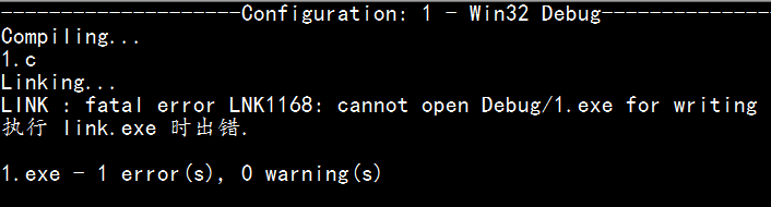 vc++ 6.0 LINK : fatal error LNK1168: cannot open Debug/1.exe for writing 执行 link.exe 时出错.怎么办