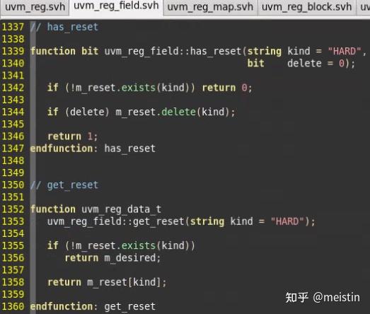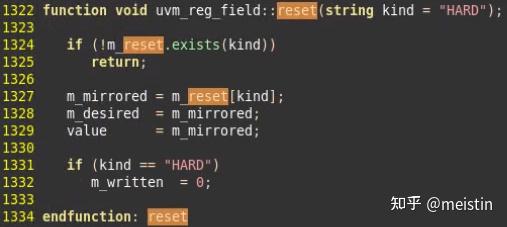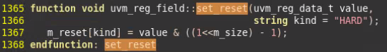 这里我们涉及到了第一个修改uvm_reg_field里复位值的函数set_reset(),我们可以通过调用 set_reset() 函数实现对m_reset[string]关联数组的赋值,这样便可以覆盖我们在调用寄存器模型初始化configure的硬复位值,全局修改m_reset["HARD"]值,当然也可以自定义添加其他复位值类型。