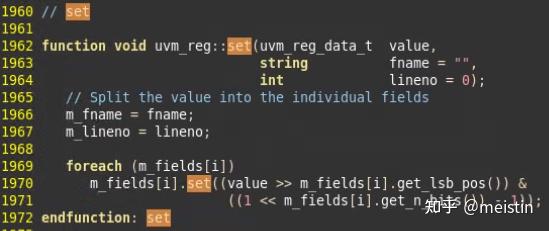 uvm_reg中调用set()相当于遍历的调用其中所有uvm_reg_field的set()函数,这种原理类似递归调用所有uvm_reg_field中的同名方法的包括get()、reset()、get_reset()、has_reset()、needs_update()、get_mirrored_value(),我们就不具体截图展开描述了。