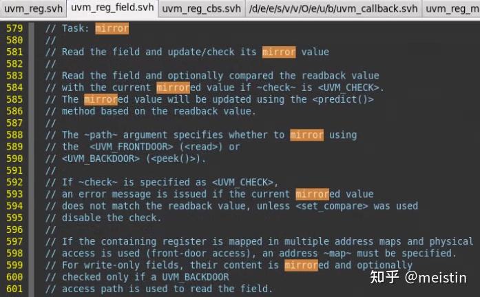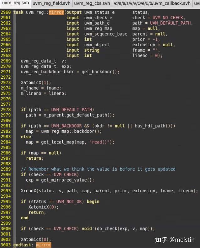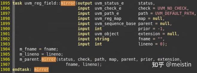 1、mirror()任务主要功能是通过所在uvm_reg发起的read()行为获取dut中寄存器对应reg_field的值(UVM_FRONTDOOR是消耗时间的,因而这里用的task,而不同于上面提到的都是function),并将值更新到m_mirrord(镜像值)和m_desired(期望值)。