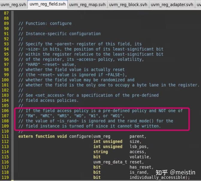 这里需要注意的几点就是,当在uvm_reg中调用某个uvm_reg_field的configure()函数时: