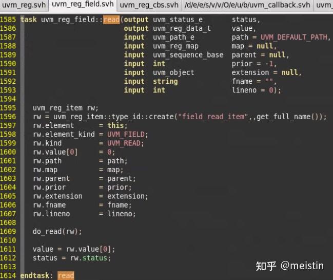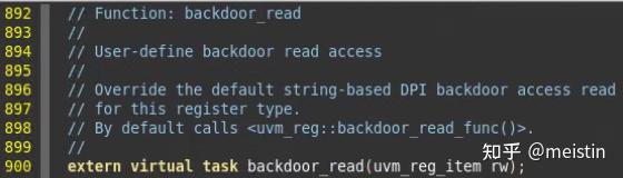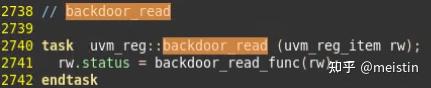 在uvm_reg中搜索backdoor_read()可以看到在do_read()中也有调用该方法,由此可见backdoor_read()功能与read()指定path为UVM_BACKDOOR功能类似,区别在于read()除了包含backdoor_read()的所有功能外,还额外增加了一些进程控制、值检查、do_predict()以及post_read()之类的callback功能。