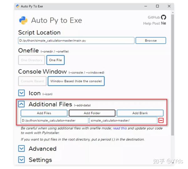 如果程序里面有自己的模块,我们必须把模块的目录添加到 Additional Files 里面。不然会出现 Failed to execute script XXX 错误
