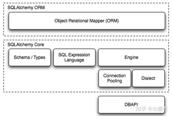 值得注意的是,SQLAlchemy必须依赖其他操纵数据库的模块才能进行使用,也就是上面提到的DBAPI。