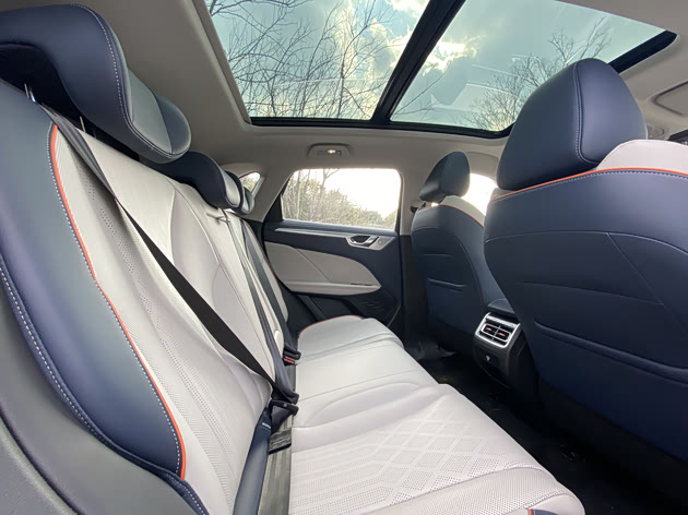 玛奇朵DHT-PHEV的后排空间有些局促,可能也是因为坐姿较高的原因,其腿部空间真的不像是一台轴距2710毫米的车该有的,而且坐垫比较短,座椅靠背的角度比较直,长途旅行别说挤3个人,坐两个人都不会很舒服,但是如果考虑是宝妈放个儿童安全座椅,然后旁边座椅再放点杂物还是OK的。此外,玛奇朵的底盘调校真的很软,其实坐在后排总感觉起伏不定,在经过持续坑洼路面时,也不是很舒服。