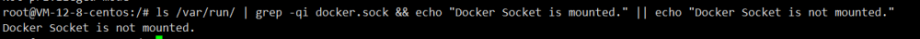 ls /var/run/ | grep -qi docker.sock && echo "Docker Socket is mounted." || echo "Docker Socket is not mounted."