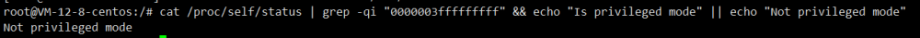 cat /proc/self/status | grep -qi "0000003fffffffff" && echo "Is privileged mode" || echo "Not privileged mode"