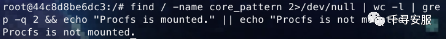 find / -name core_pattern 2>/dev/null | wc -l | grep -q 2 && echo "Procfs is mounted." || echo "Procfs is not mounted."