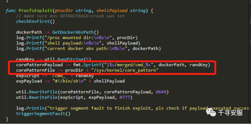 拼接workdir,并且写入core_pattern中,并以管道符|开头的路径: