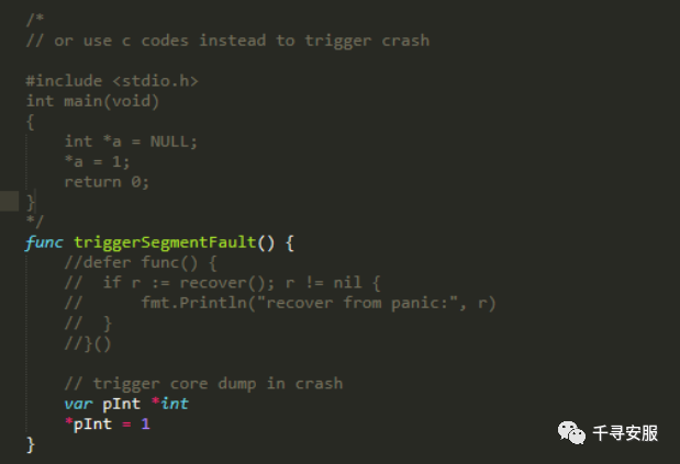 导致崩溃的原因:空指针赋值不会崩溃,输出空指针会导致崩溃。这儿只需要让其产生段错误,也就是对空指针赋值就会出现段错误。