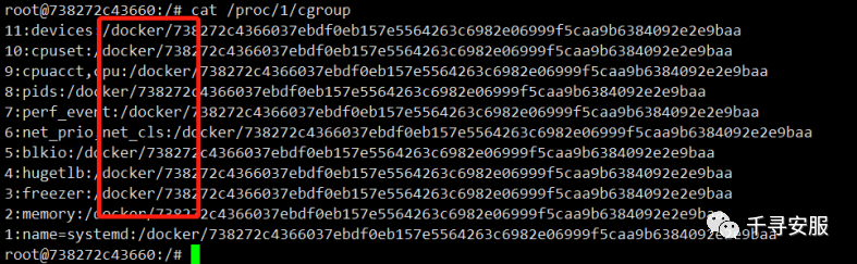 cat /proc/1/cgroup cgroup是实现docker资源控制的组件,因而你查看这个东西看到的全是docker,以下为docker: