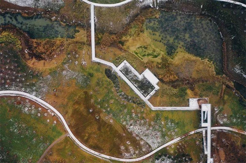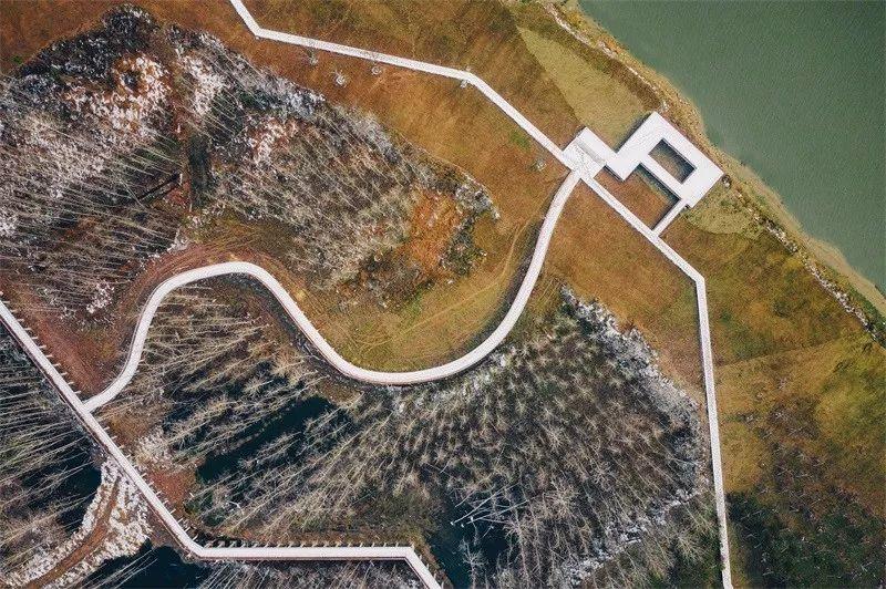 局部有景观微地形,丰富竖向景观层次。溪流、湖泊串联的自然形态,构造了相对连续的生态景观体系。
