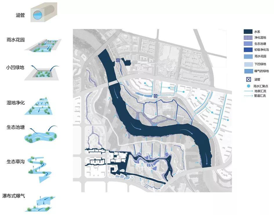 内河水泡给予河流一部分流动的弹性空间,具备了自然河流所具有的一部分河流自动力过程、河流物质交换、动植物栖息地等生态功能,扩大的洪泛范围应对“城市内涝”的解决策略。