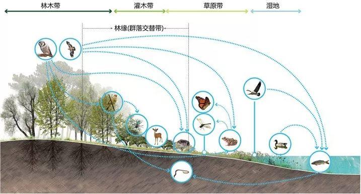 通过梳理地形地貌,丰富植被环境,吸引更多种类的动物栖息,完善多样稳定的生境环境。植物群落规划的多种空间结构提供了多样的生境,具有多样栖息地环境潜能。