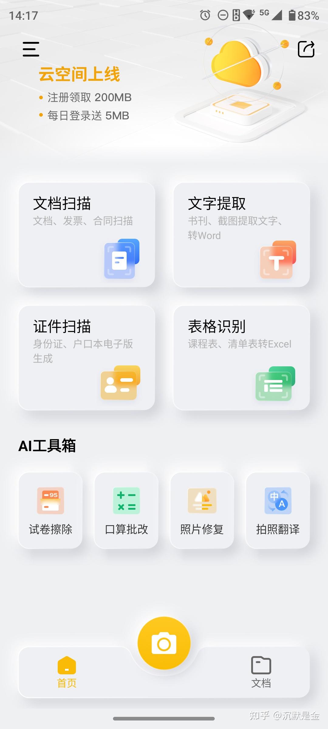 除了基本功能文档扫描、文字提取、证件扫描和表格识别外,又增加了试卷擦除、口算批改、照片修复和拍照翻译等AI工具。这些AI功能平时应该用的很少。