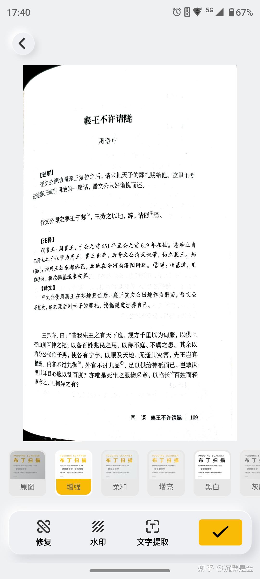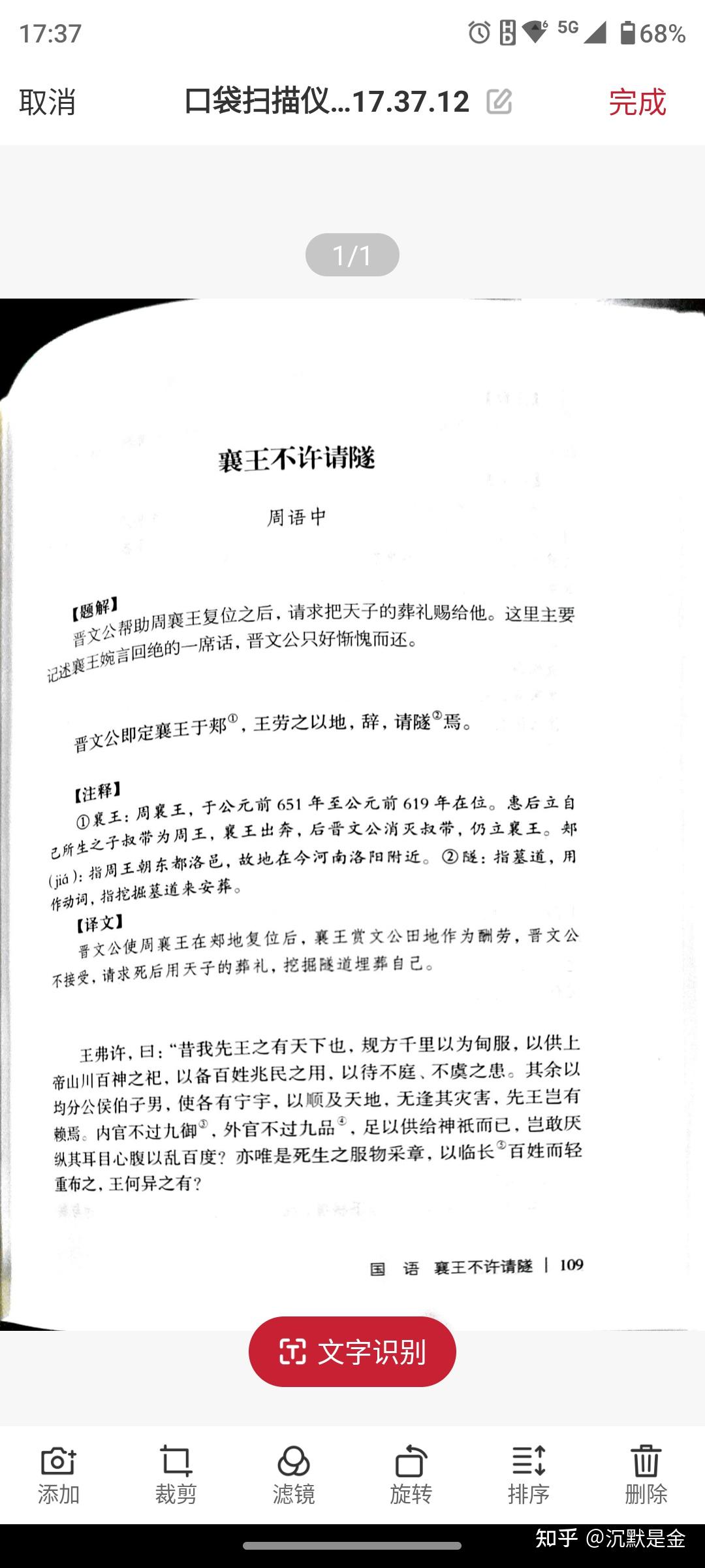 三个app拍的都是同一页文言文,看文字识别率,office lens 和口袋扫描仪要好一些,布丁错别字多一些。