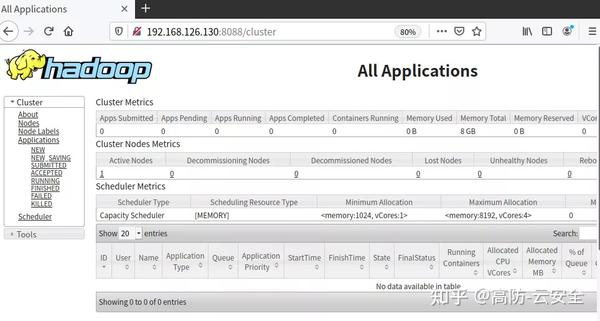 Apache Spark是一款集群计算系统,其支持用户向管理节点提交应用,并分发给集群执行。如果管理节点未启动访问控制,攻击者可以在集群中执行任意代码。该漏洞的本质是未授权用户可以向Master节点提交一个应用,Master节点会分发给Slave节点执行应用。如果应用中包含恶意代码,会导致任意代码执行,威胁Spark集群整体的安全性。