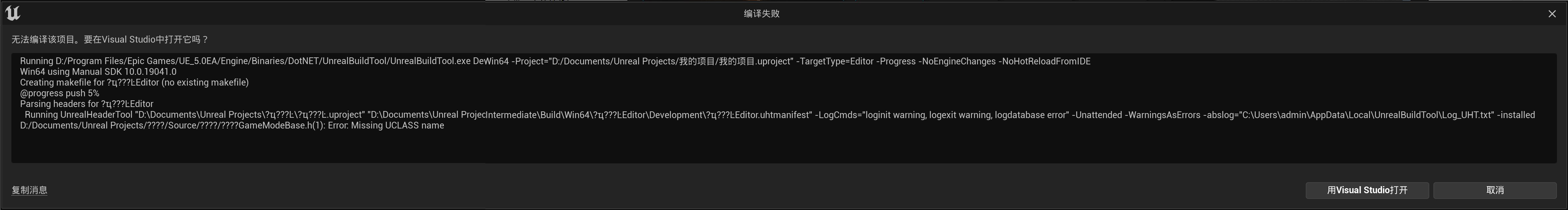 Running UnrealHeaderTool "D:\Documents\Unreal Projects\?ҵ???Ŀ\?ҵ???Ŀ.uproject" "D:\Documents\Unreal Projects\?ҵ???Ŀ\Intermediate\Build\Win64\?ҵ???ĿEditor\Development\?ҵ???ĿEditor.uhtmanifest" -LogCmds="loginit warning, logexit warning, logdatabase error" -Unattended -WarningsAsErrors -abslog="C:\Users\admin\appData\Local\UnrealBuildTool\Log_UHT.txt" -installed