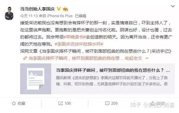 当李国庆在腾讯的《梦想家》节目上愤怒的摔碎水杯,把对面的女主持吓到(变形)花容失色时,我们很难猜测这位曾经的当当网创始人、如今的“无业游民”到底是因为真的情绪激动,还是试图借助这样的举动吸引眼球。