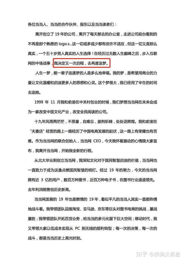 从2019年2月20日向大众发表自己的二次创业计划: “作为当当网的联合创始人、当当网CEO,今天我怀着激动的心情跟大家宣布,离开当当网,开始我全新的行程。”