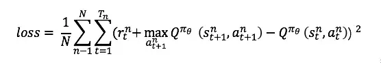 此时的Critic根据估计的Q值和实际Q值的平方误差进行更新,对Critic来说,其loss为: